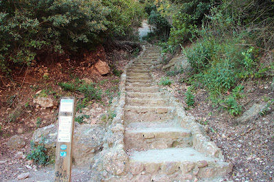 El tram d'escales culmina amb aquesta panoràmica de la Santa Cova.